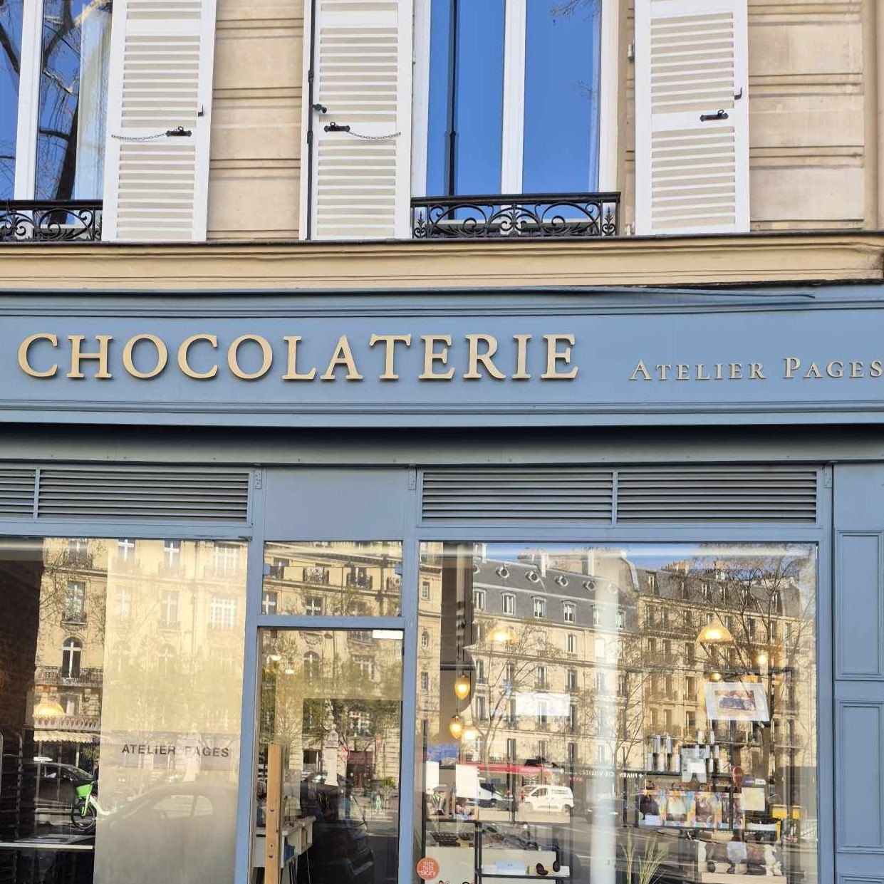 La chocolaterie « Atelier Pages », située près du métro Villiers (Paris 8e), est dirigée par Naoko Oishi-Teshima. La cheffe chocolatière – également pâtissière et sommelière – est l’épouse de Ryuji Teshima, chef du restaurant étoilé Pages. On se souvient avec émotion de Pages Blanches, cette pâtisserie inaugurée par le couple au même endroit en 2022, qui a laissé place début 2024, à la chocolaterie. Si le sublime flan au matcha vous manque, vous pouvez de nouveau le déguster en terrasse aux beaux jours, accompagné d’un thé, d’un chocolat chaud ou d’un matcha latte, de sablés cacahuète-caramel, de brownies au chocolat blanc, de cookies aux noisettes, de rochers de granola (lin, pavot bleu…), enrobés de 3 chocolats.