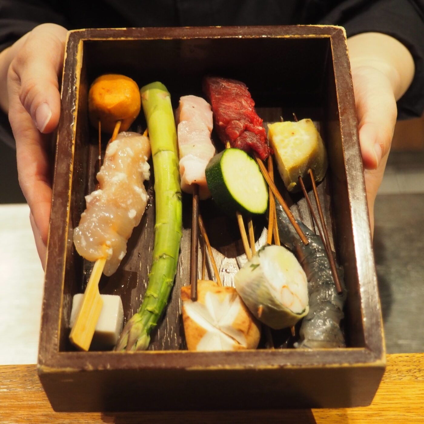 Le terme kushikatsu évoque immanquablement la street-food, mais le chef Shodai nous prouve qu’avec des produits de grande qualité et une bonne technique, ce plat peut être servi dans un cadre plus distingué et relever de la haute gastronomie. Au menu du soir, on retrouve de belles créations autour de produits frais de qualité : boeuf d’origine française, porc, foie gras au whisky, crevettes, Saint-Jacques, daurade, racine de lotus, patate douce, shiitake, daikon…