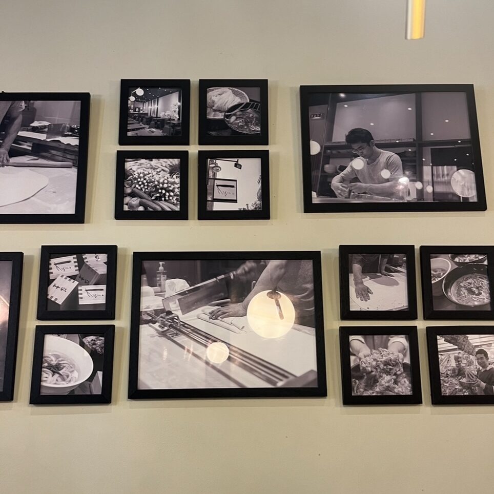 Dès l’entrée, le charme opère. La salle, épurée et lumineuse, mêle bois clair et éléments minimalistes, dans l’esprit des maisons traditionnelles nippones. Au mur, une calligraphie japonaise représentant les kanji de « Kisin », signifiant à la fois joie et cœur, donne le ton. Derrière le comptoir, on peut observer le chef à l’œuvre, découpant les nouilles fraîchement pétries sous nos yeux.