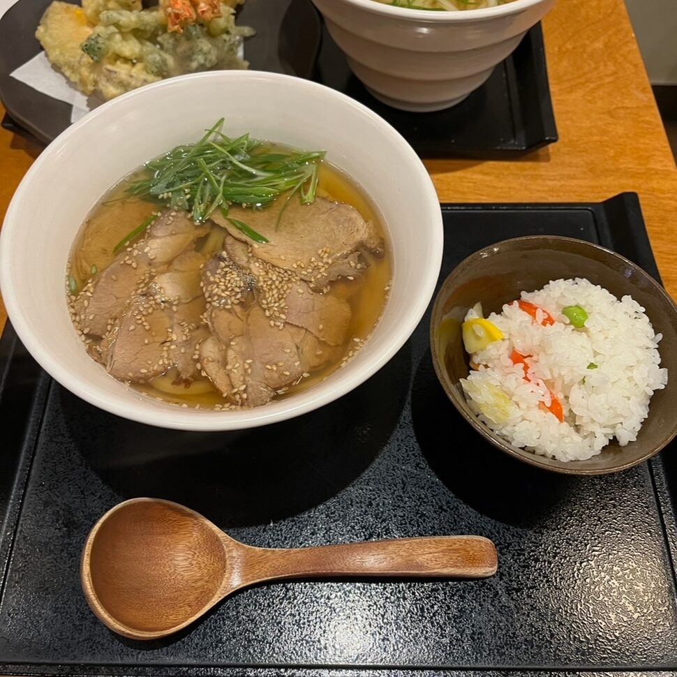 Puis, les Udon Nibuta (23 €), agrémentés de généreuses tranches de porc mariné. Chaque plat est accompagné, au choix, d’un bol de riz ou d’une salade vinaigrée. Les tempura sont croquants et pleins de saveur, le bouillon réconfortant et finement parfumé, les nouilles fondent en bouche : un véritable plaisir gustatif.