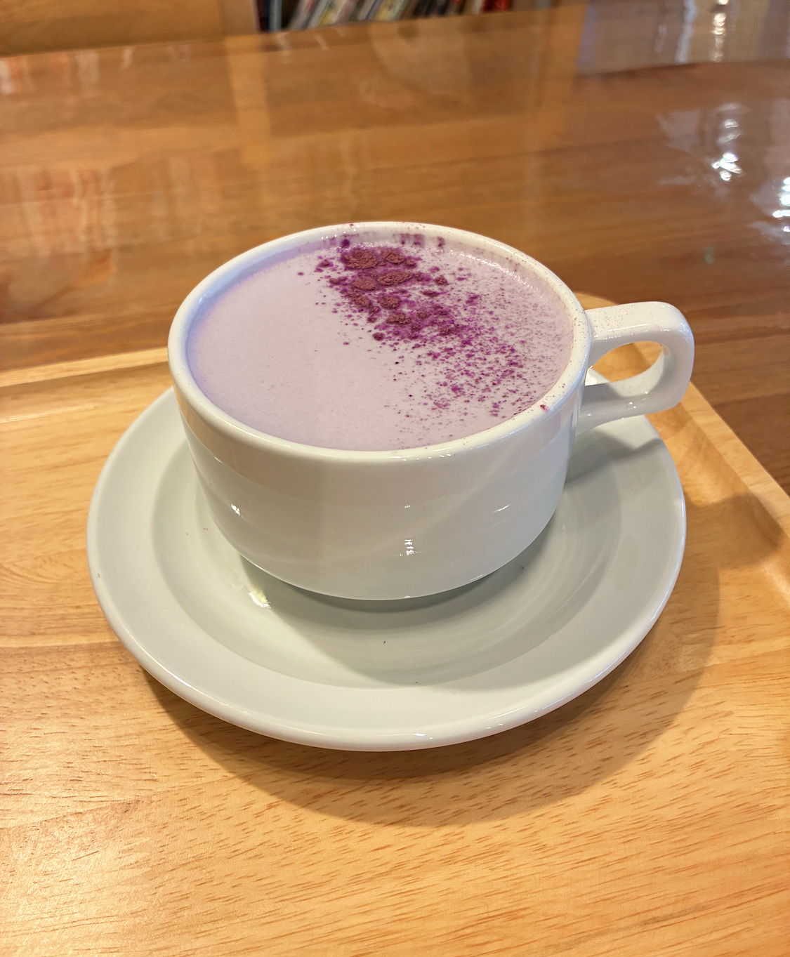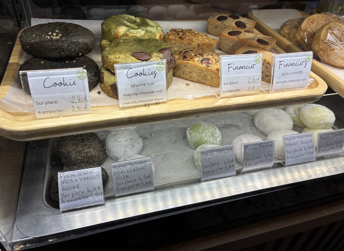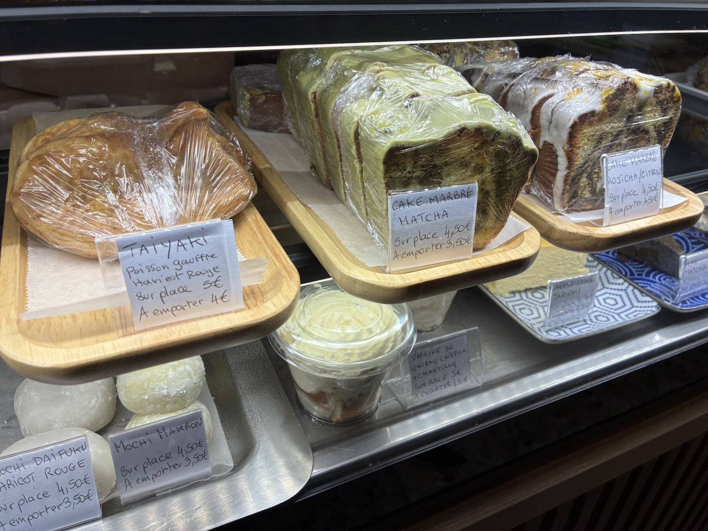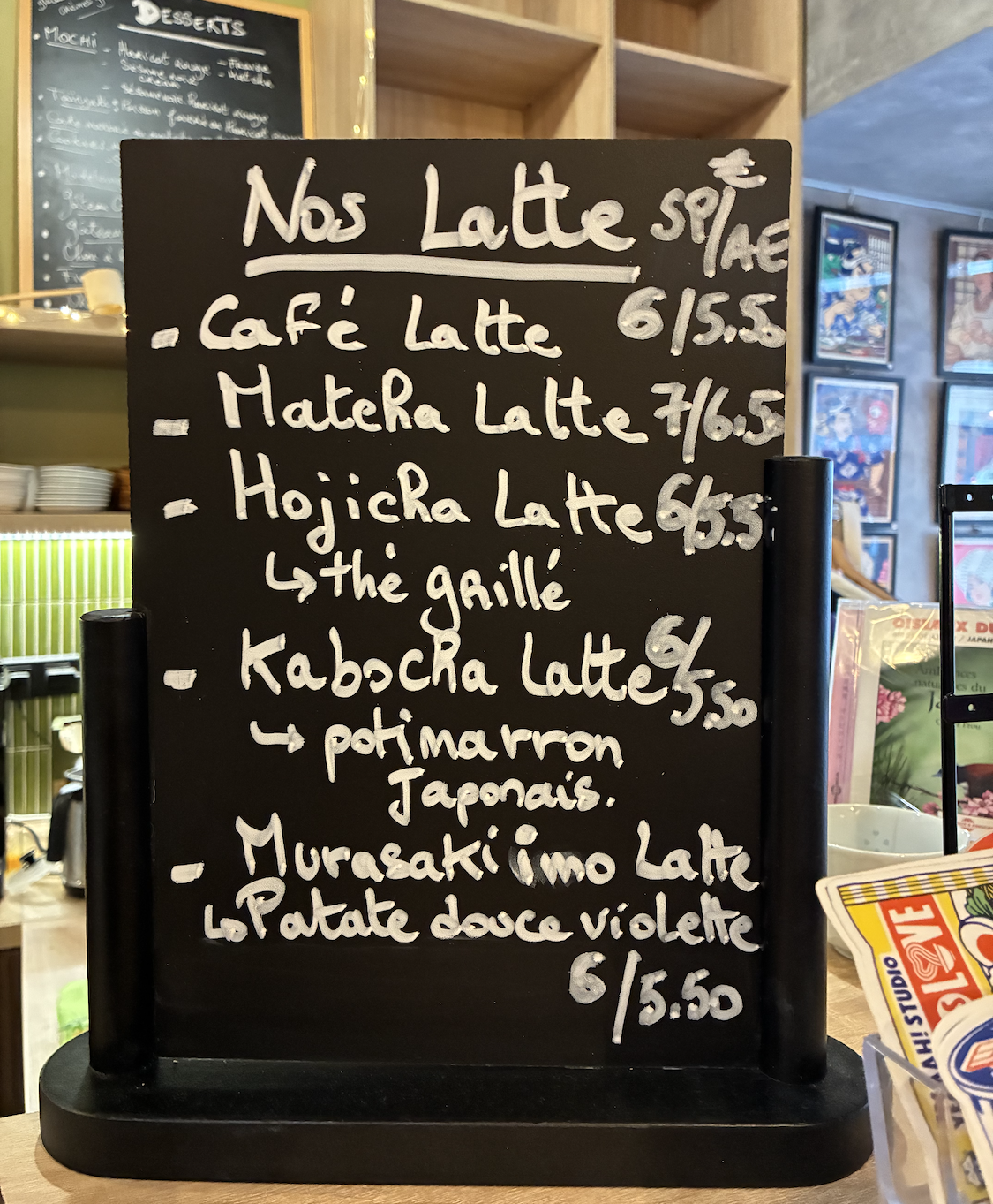 Côté boissons chaudes, on retrouve les classiques matcha latte, houjicha latte mais aussi des recettes saisonnières comme le kabocha latte (potimarron japonais) ou le murasakiimo latte (patate douce), à la jolie couleur violette. Un soin particulier est apporté à la sélection des ingrédients pour préserver l’authenticité des saveurs japonaises.